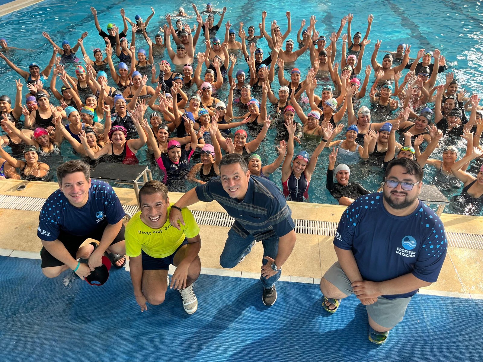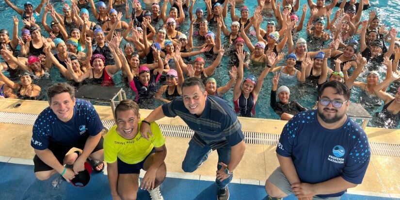 La actividad se desarrolló en la reconocida Piscina Gildemeister, donde decenas de vecinos participaron activamente en esta propuesta que combina ejercicios acuáticos con dinámicas de baile fitness, para fortalecer la salud física, mejorando la resistencia cardiovascular y promoviendo la integración comunitaria en un entorno seguro y motivador.