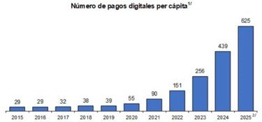 Indicó que este nivel de uso equivale a aproximadamente 1.7 pagos digitales diarios por adulto en el 2025, reflejando un cambio estructural en los hábitos de pago de la población.
