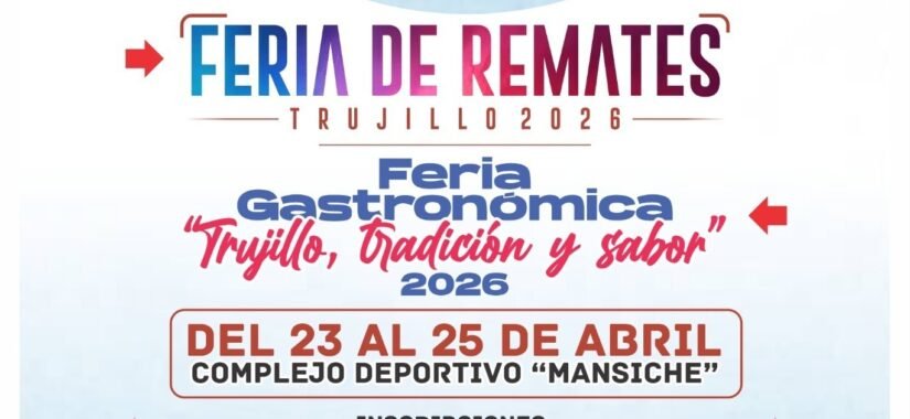 Apoyando a emprendedores y empresarios a los que no les cobrarán por participar, la Municipalidad Provincial de Trujillo (MPT) organiza por segundo año consecutivo la Feria de Remates Trujillo 2026 y el Festival gastronómico: Trujillo, tradición y Sabor, del 23 al 25 de abril en el complejo Mansiche, con ingreso[…]
